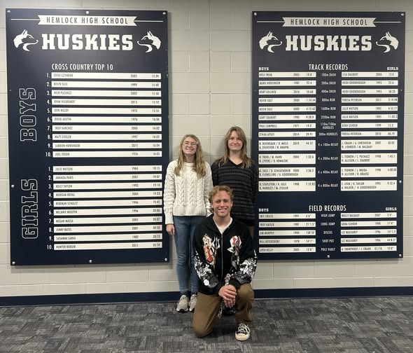 With the help of these students and our custodial staff, the high school Track and Field and Cross Country record boards are back on display after being in storage during construction. They showcase the legacy of those who came before and are ready to inspire the future Huskies! |