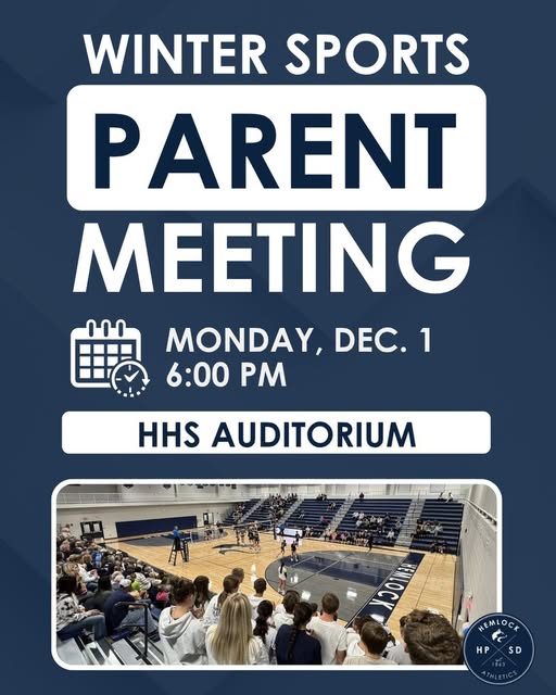 Mark Your Calendars! All parents of high school winter athletes are asked to attend the Winter Sports Parent Meeting on Monday, December 1st at 6:00 PM in the High School Auditorium.