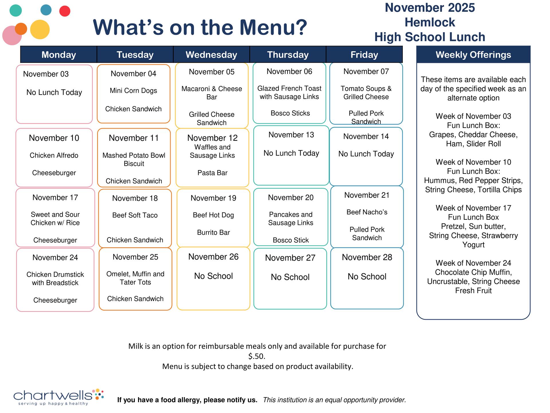 Free Meals Continue at Hemlock Although the State of Michigan has not yet finalized its budget, Hemlock Public Schools remains focused on what matters most, our students. For now, we’ll continue providing free meals to all students while we wait for more clarity on long-term funding from the State. Thank you for standing with us as we put kids first.