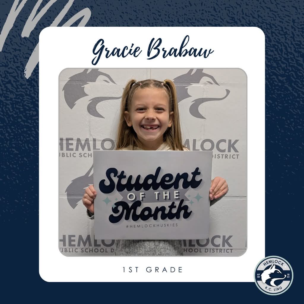 Gracie Brabaw, a first grader in Mrs. Olinger’s class at K.C. Ling Elementary, is our next Student of the Month.