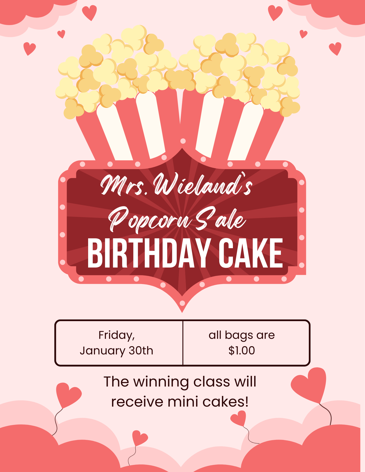 Friday, January 30th Popcorn Friday, special flavor is Birthday Cake. All bags are $1.00 - rescheduled |