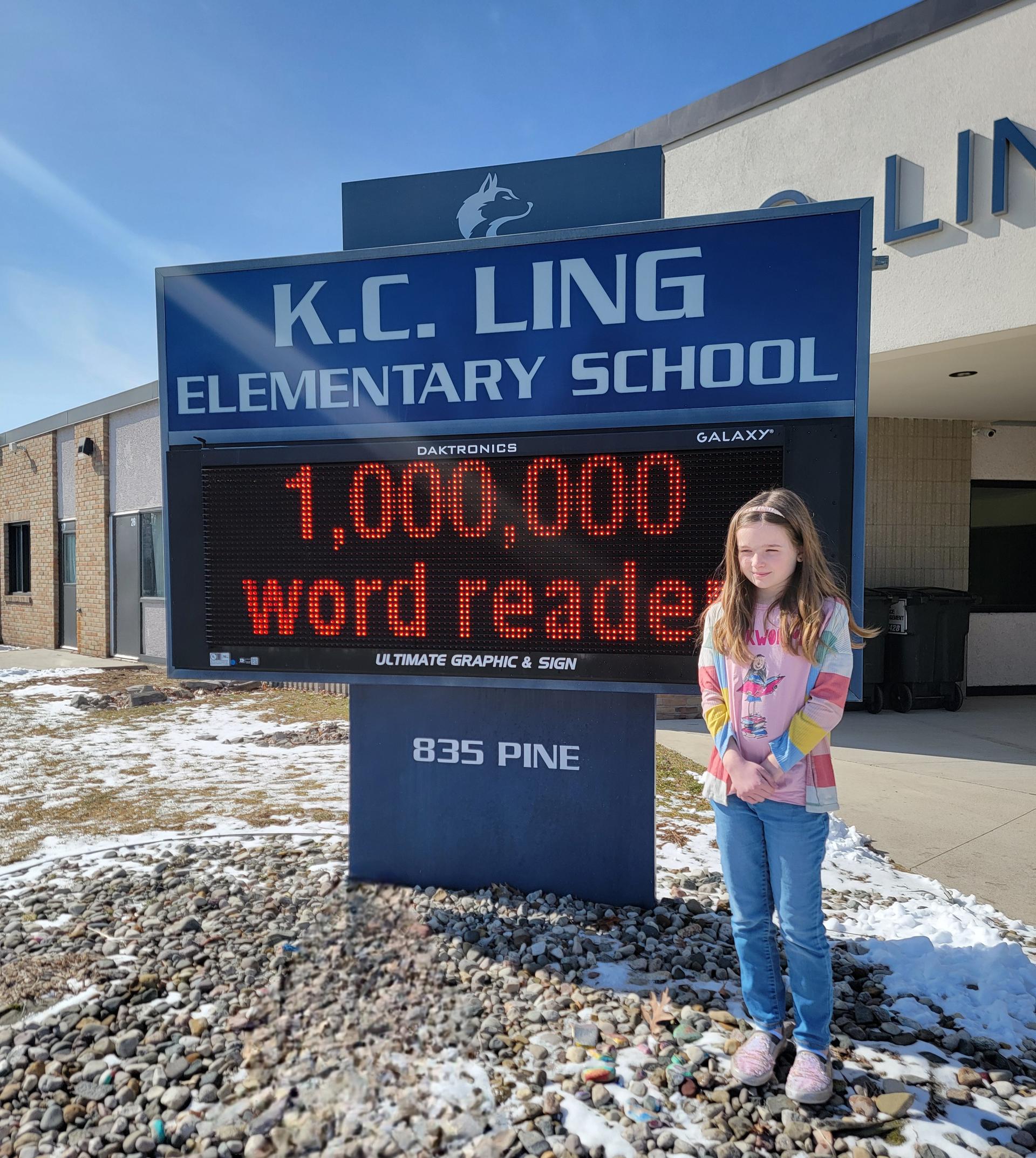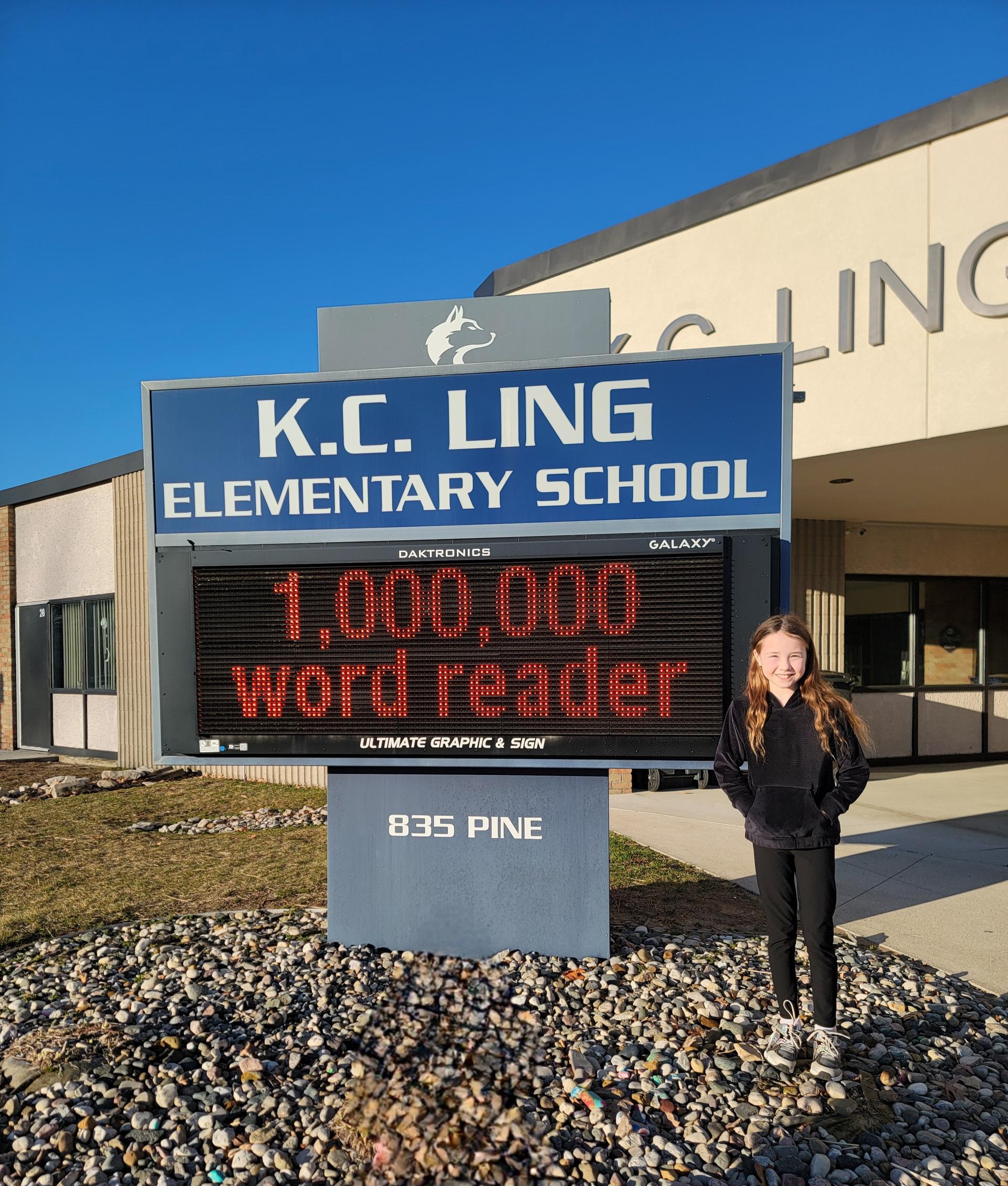 We are excited to celebrate another incredible reading milestone at K.C. Ling! 📚✨ Congratulations to Avienda Dubay for becoming our newest 1,000,000 word reader this school year! Reaching one million words is an amazing accomplishment that shows dedication, perseverance, and a true love of reading. We are so proud of Avienda for this outstanding achievement.