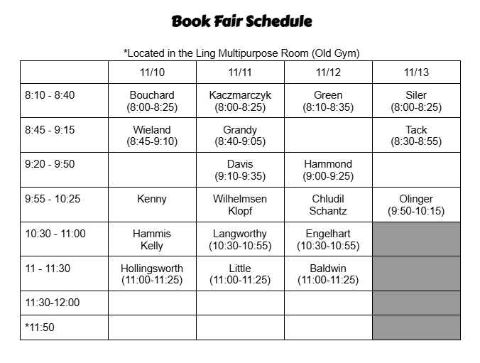 Thursday, November 13th Book Fair 1/2 Day - 11:09am dismissal