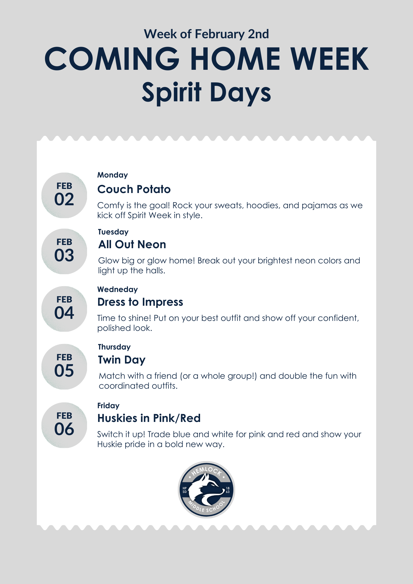 Hey Huskies! We now have an option available to us through Lifetouch called the Community Image Upload. This enables anyone (teachers, staff, parents, students) with candid shots to directly upload them to the portal. You must click on the following link https://community.lifetouch.com/invite?code=HEMLOCK-MIDDLE-SCHOOL-26, enter your email, create an account (if you don't already have one) and then upload. The pictures will then be put in the community section on the portal and Ms. Kris will have access to use them for yearbook or social media purposes.