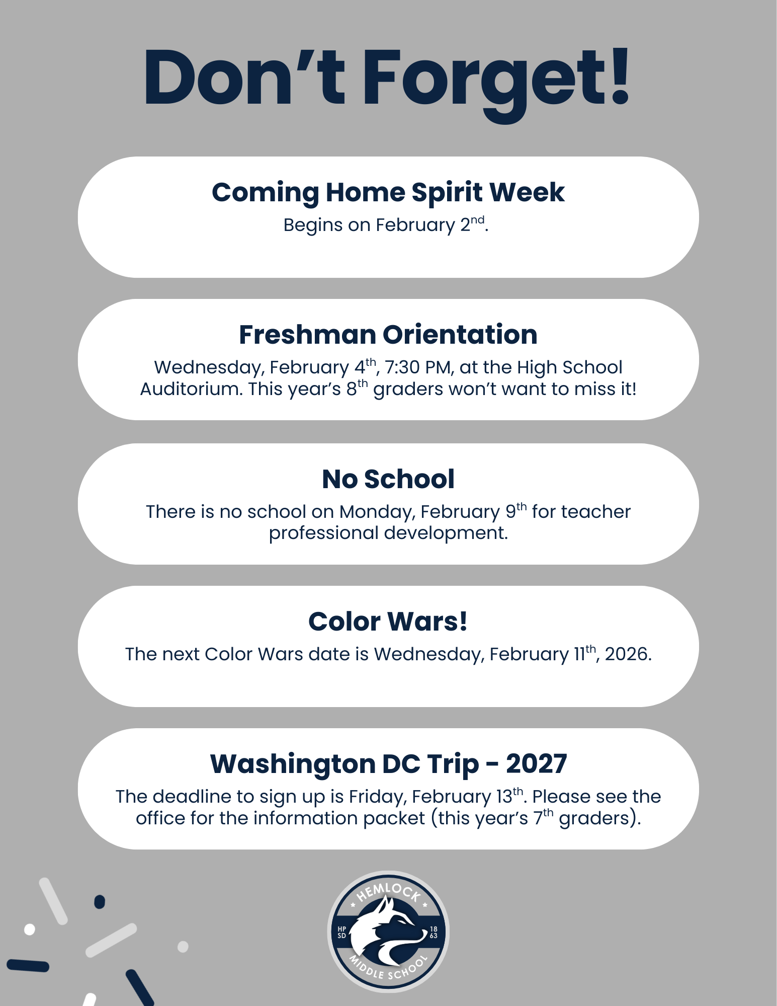 You are definitely still welcome to email Ms. Kris at ballou@hemlockps.com with any pictures that you wish to send in, this new Lifetouch portal is just another option for everyone to use. Please share either of these options with anyone that would like to send us pictures of our HMS students being amazing! |